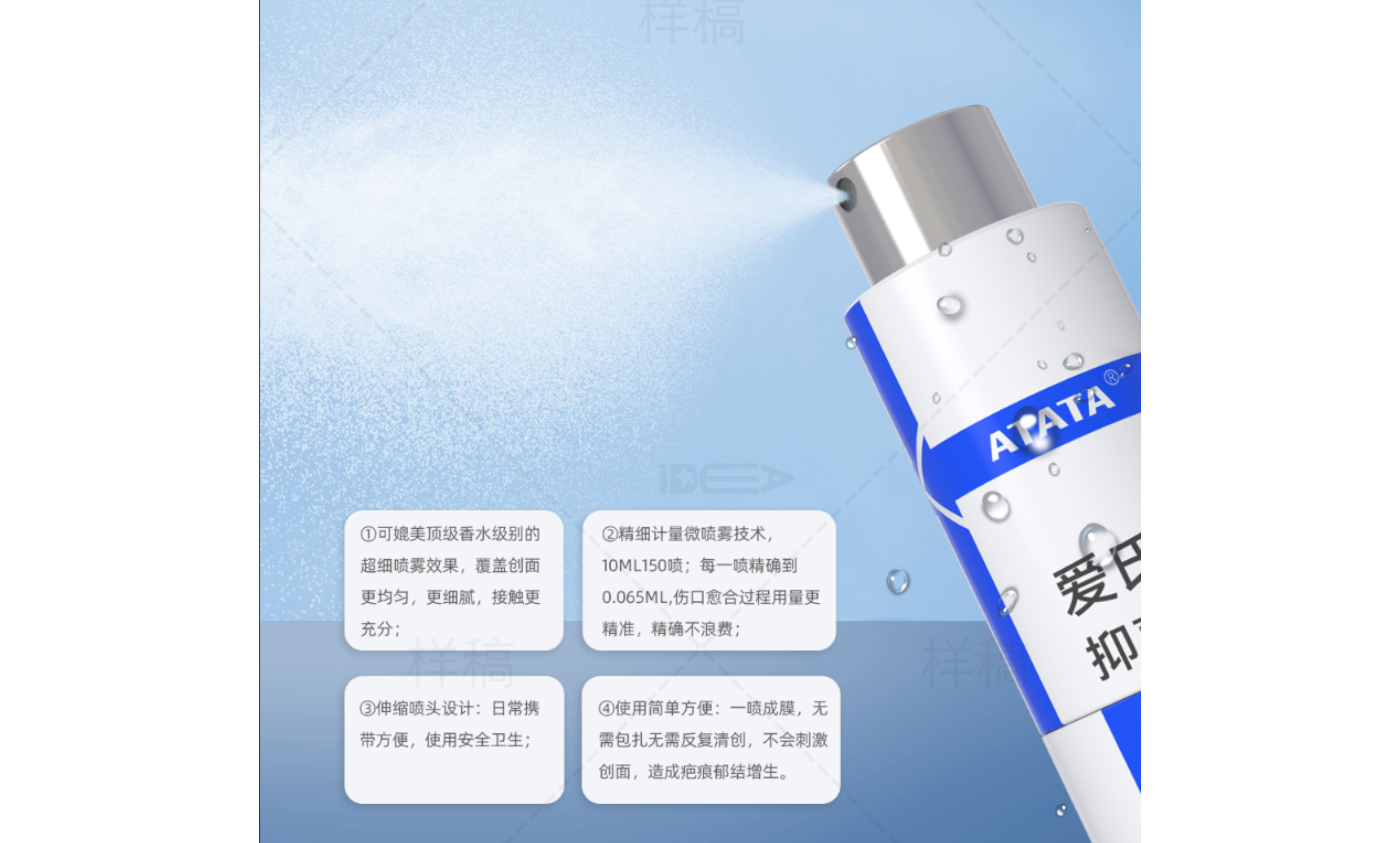 2、減少疤痕刺激:ATATA愛氏抑菌液無色無味無刺激,同時具有強大抑菌能力,不需要反復刺激和頻繁清理傷口。這有助于減少傷口創面的刺激和損傷,保護創面細胞的有序生長,從而降低疤痕形成的可能性。